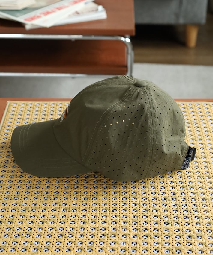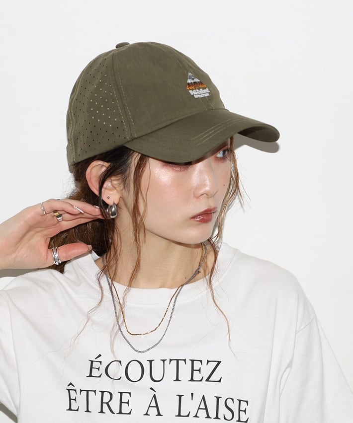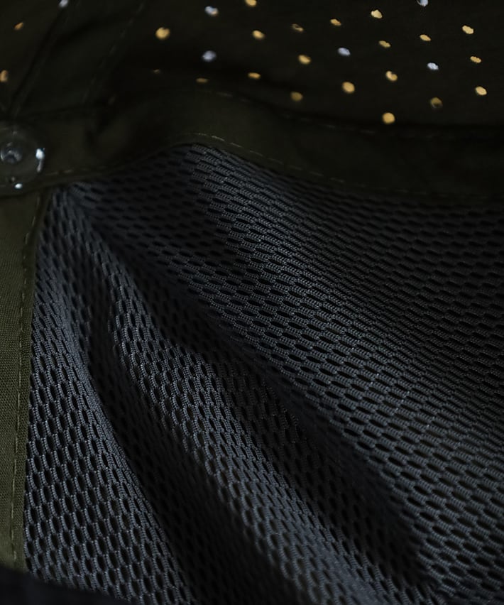 通気性にも優れ、汗ばむ季節にも快適さを保つアウトドアキャップに適した素材構成です。